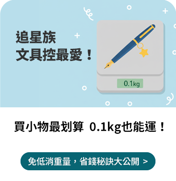 ● 首公斤免費: 在所有訂單皆享運費 7 折後,系統將以該次「集運出貨清單」的包裹總重量進行計算,為您直接折抵 1 公斤的運費,您無須考慮包裹數量。 (若該次集運總重不足 1 公斤,將依其實際總重全額折抵。)